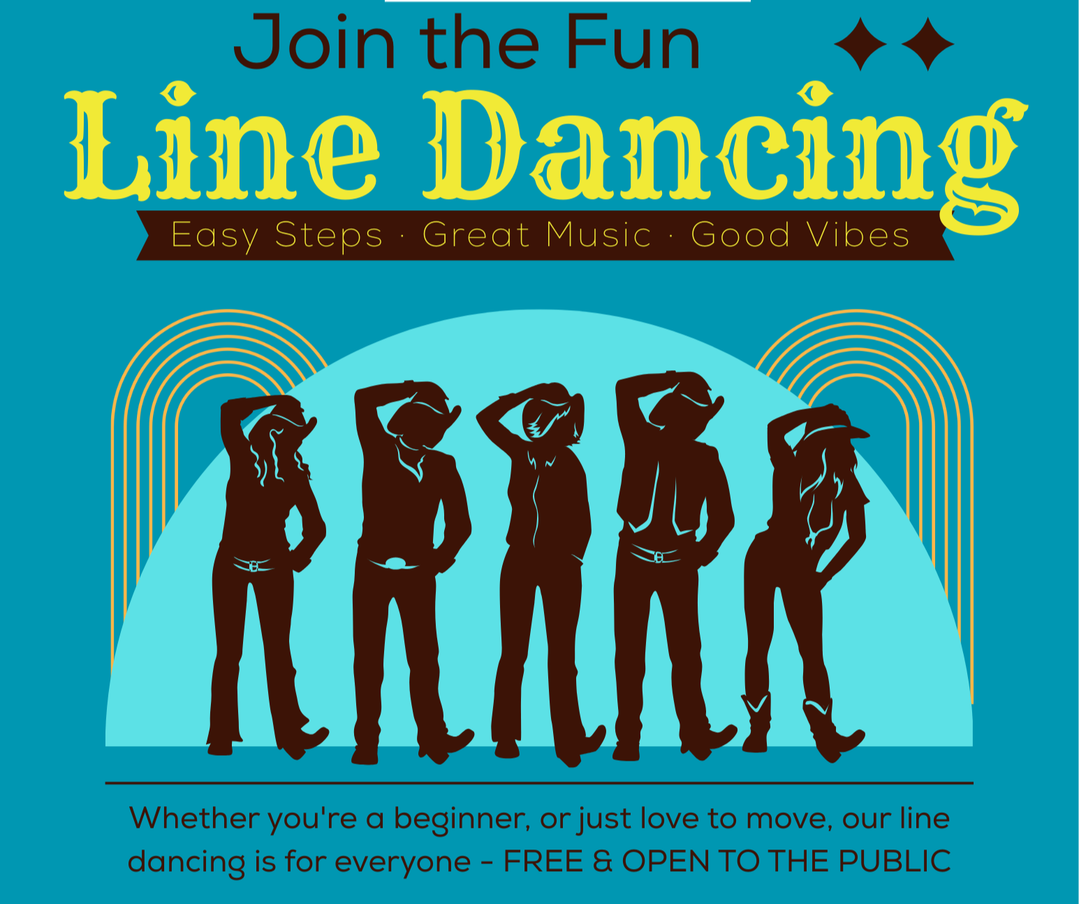 Join us for a night of LINE DANCING on the Breezeway! Learn some easy steps to great music & vibes.