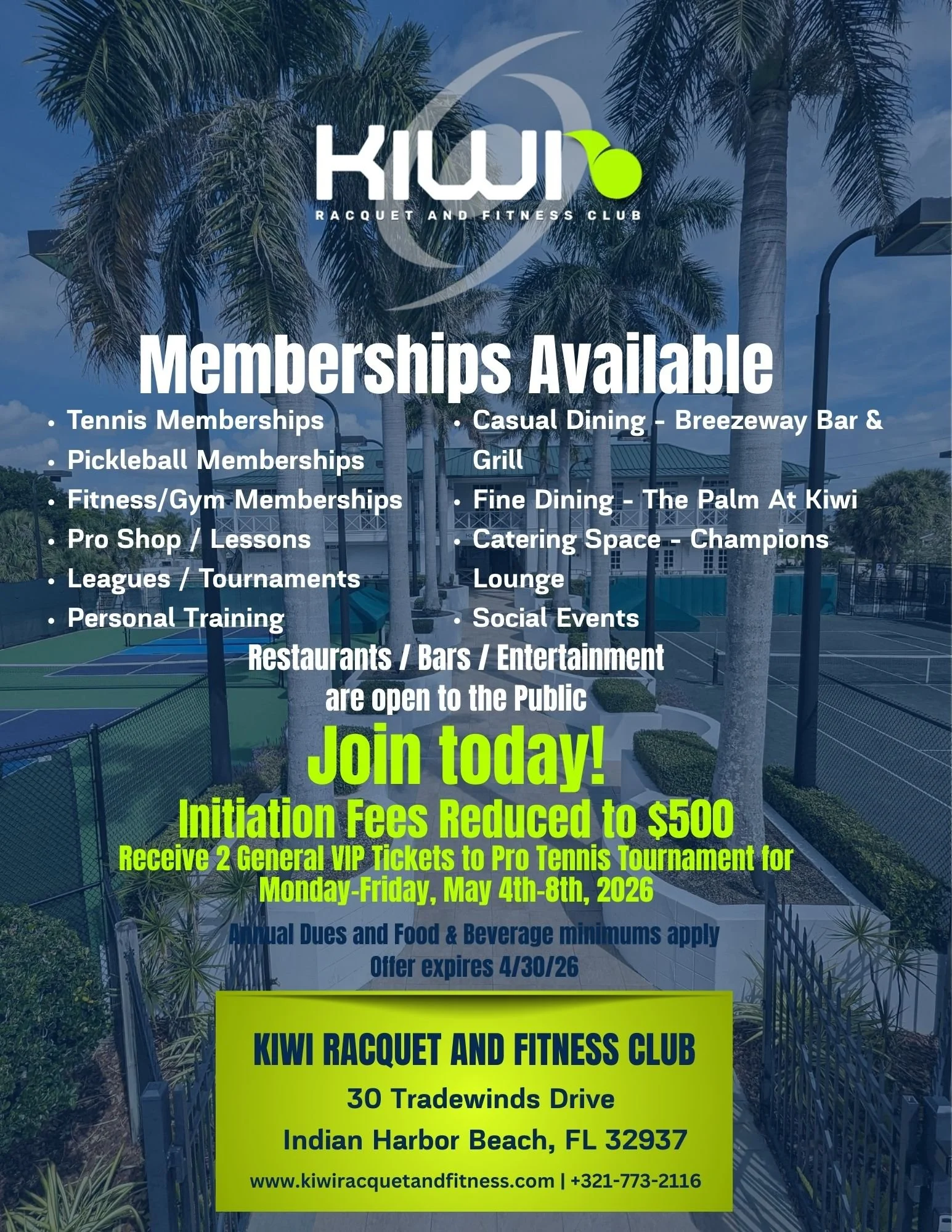 Enjoy everything Kiwi Racquet and Fitness Club offers - Tennis, Pickleball, and Fitness.